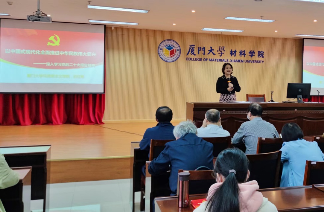 12月12日下午,555000公海登录组织党委理论学习中心组(扩大)学习——党的二十大精神学习专题报告,学习贯彻党的二十大精神。会议邀请了厦门大学马克思主义学院党委书记石红梅教授作专家报告。会议由555000公海登录党委书记刘立荣主持,学院党政领导、党委委员、全院教职工、全体师生党支部书记和委员参加。