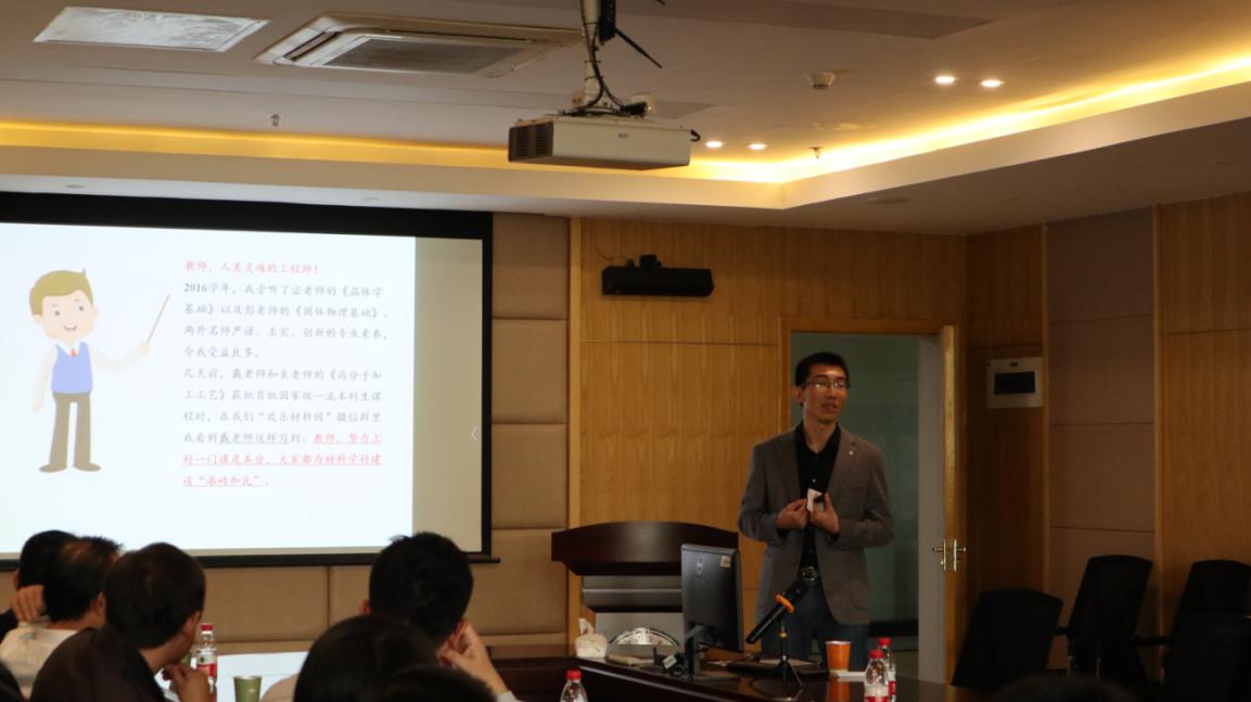 张志昊助理教授进行课程思政经验分享,他从“立德树人 教书育人”的角度出发,全面介绍了《航空航天材料概论》通识教育课在“课程思政”建设中的教改实践,他表示“教师是人类灵魂的工程师,教书育人是责任更是义务。”