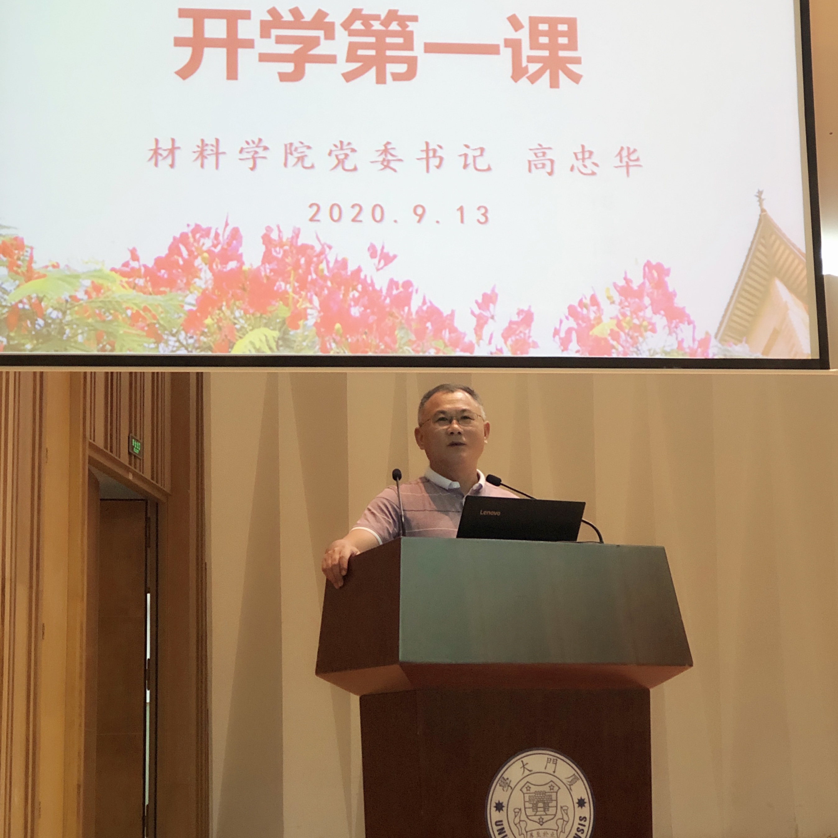 高忠华围绕厦门大学的建校历史、学校建筑背后的历史故事以及厦大四种精神,生动地讲述了校主陈嘉庚“宁可变卖大厦,也要支持厦大”的感人故事,诠释了爱国精神;赞颂了罗扬才烈士英勇就义的事迹,升华大家心中革命精神;形象地描述内迁闽西艰苦办学的场景,强调自强精神;激情讲述了以陈景润为代表的知名学者与厦大的渊源,在故事中将科学精神传递。他希望新同学们继承厦大优良传统,发扬厦大“四种精神”,砥砺奋进新时代,做最好的材料人。