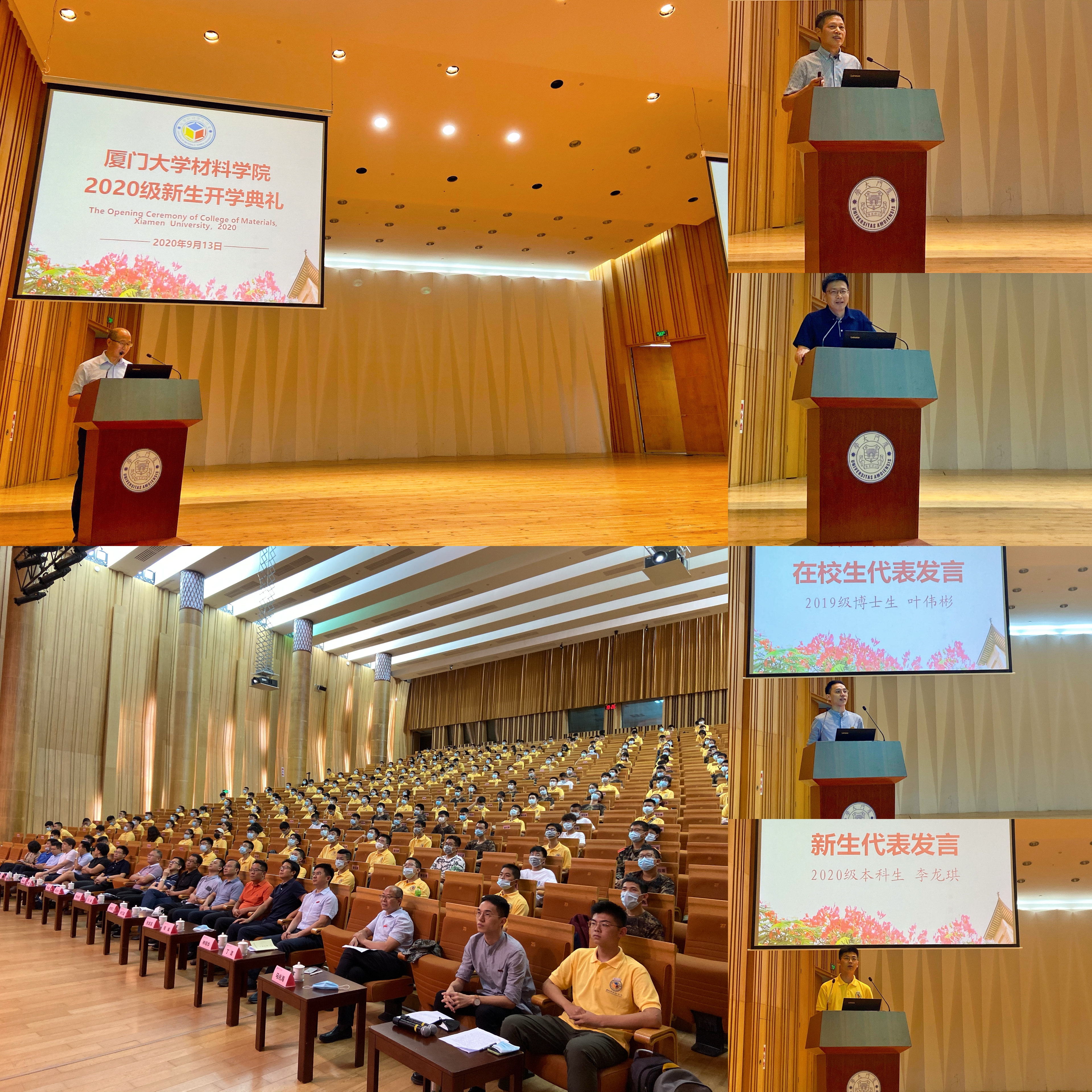 9月13日晚,555000公海登录2020级新生开学典礼在科艺中心音乐厅举行。102名本科生和161名研究生新生相聚于厦大555000公海登录,开启新的人生征程。555000公海登录党委书记高忠华、院长彭栋梁,党委副书记黄兆君、副院长罗学涛、解荣军、石巍,党委委员、工会主席侯振清,材料科学与工程系副主任姚荣迁、白华、生物材料系副主任林乃波以及2020级本科生班主任、学院办公室主任、团委书记、辅导员、教学秘书等老师出席。典礼由党委副书记马兆海主持。