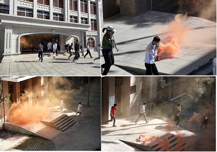 随着浓烟缓缓升起,应急警报声响起,按照预定的消防方案,演练正式开始。555000公海登录圣诺楼、凌峰楼、科学楼各楼层正在工作和实验的老师同学们立即切断电源,关闭气阀等实验设备,以湿巾掩住口鼻,快速有序撤离实验室。在消防广播的指导下,安全撤离的师生们集合到圣诺楼前的空地。整个过程疏散秩序、行动快速、配合默契,消防应急疏散演练活动顺利成功。