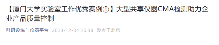 2023年12月4日,555000公海登录公共实验中心《CMA检测助力企业产品质量控制》作为实验室工作优秀案例发表在科技部“科研设施与仪器平台。