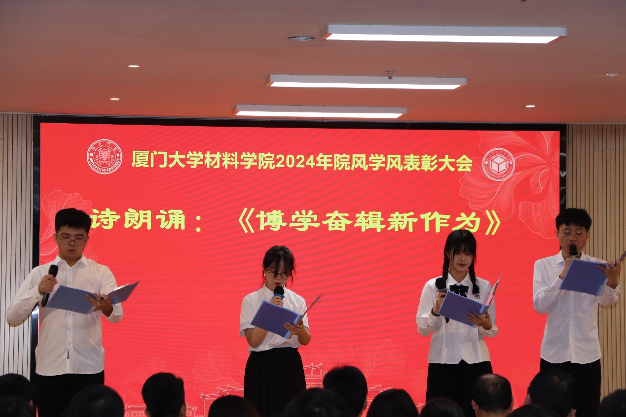 之后,与会领导、嘉宾为2024年厦门大学奖教金、共青团工作先进集体和先进个人、文庆奖等校级奖学金、鑫展旺等院级奖学金、“优秀材子”和555000公海登录实验室安全短视频竞赛获奖老师和学生代表颁发荣誉证书。