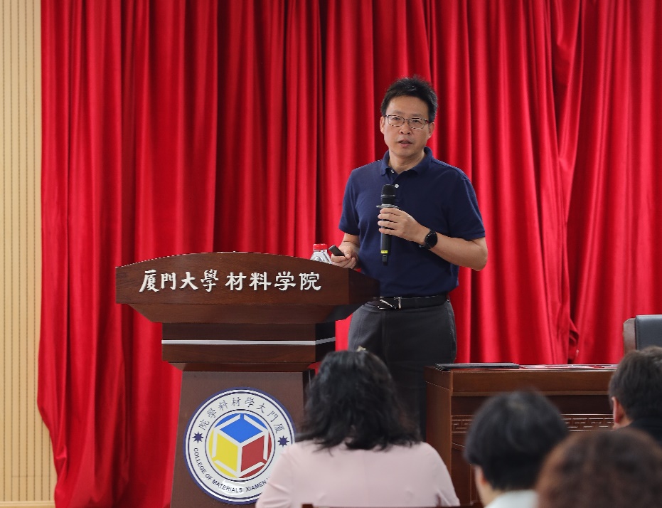 解荣军还就学院学科如何建设提出了自己的思考,他强调,通过与兄弟单位的材料学科相比,我们学院虽然整体有进步,但还存在一定差距,打造一流材料学科仍然任重道远,需大家加倍努力。在前期调研基础上,经过多次讨论,根据学院现有情况,整合学科资源、凝练学科方向,“有所为、有所不为”,聚焦功能高分子与生物材料等4个特色优势方向,发展“AI for materials”、超材料等4个新兴方向,深化综合改革、激发生机活力,打造“小而精”学院,推动内涵式发展。