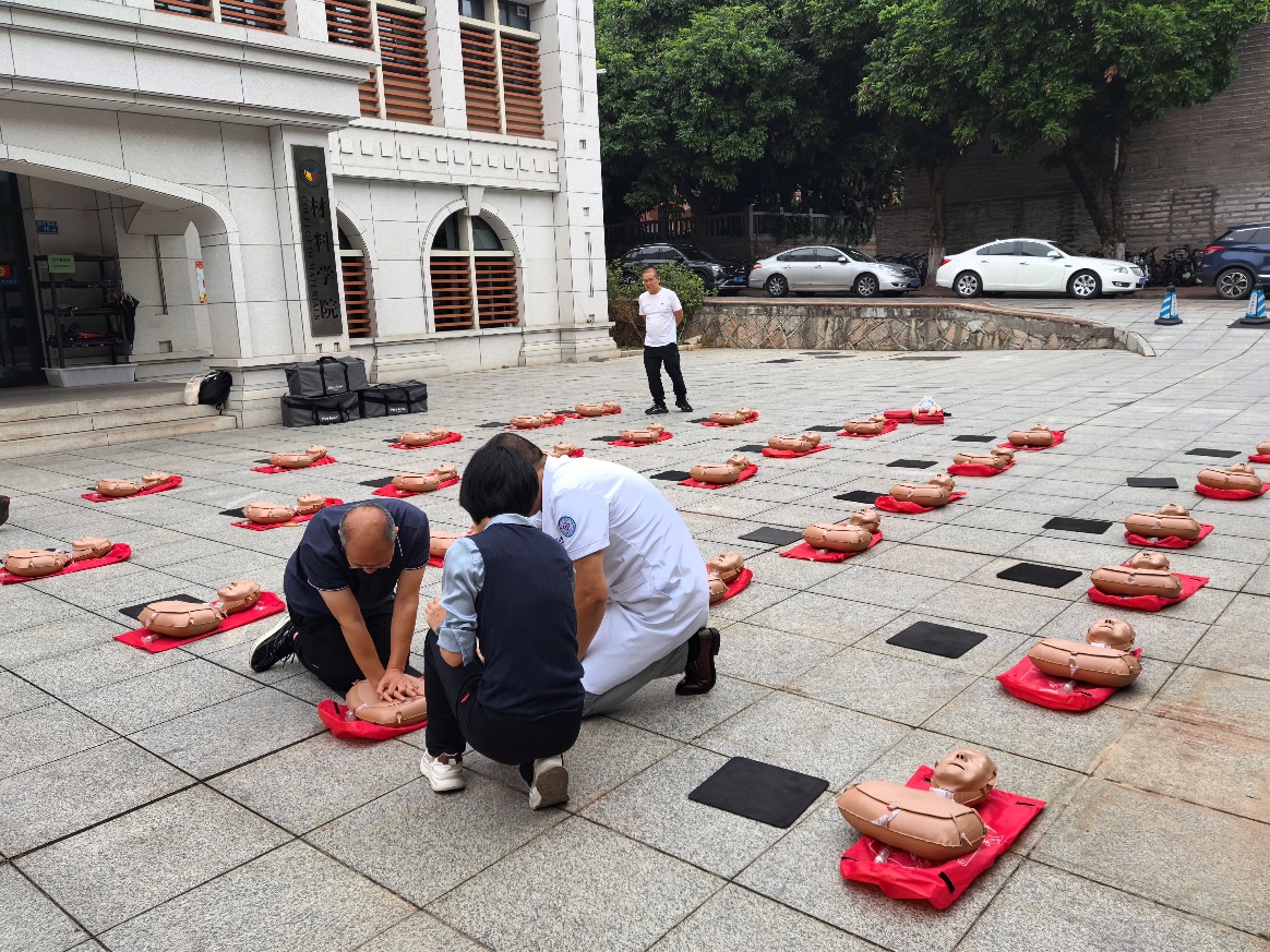 为了让师生有能力在日常工作和生活中正确处理紧急情况下遇到的心肺功能骤停、常见外出血、伤口(刀伤、刺伤、烧伤、冻伤、动物咬伤)及窒息等基本医疗救助/救护技能,555000公海登录聘请厦门大学国家临床教学培训示范中心思明院区负责人姚建宇主任及其团队来学院为师生开展心肺复苏(CPR)、自动体外除颤仪(AED)和常见基本医疗救助/救护的培训,并进行演练。姚主任团队从确保环境安全、患者意识和心肺功能判断、高声呼救、开放气道、实施CPR、使用AED等步骤和方法进行理论讲解,并提供30组模拟人供师生练习。姚主任的讲解厘清了长期困扰师生们“要不要去救”、“如何施救”的疑问。随着有节律的“01、02、03 …29、30“的数数声,师生们掌握了心肺复苏时要求100-120次/分钟的按压节拍;按压时模拟人发出“咯嗒咯嗒”的声音则表明师生的按压位置正确、按压深度符合要求。