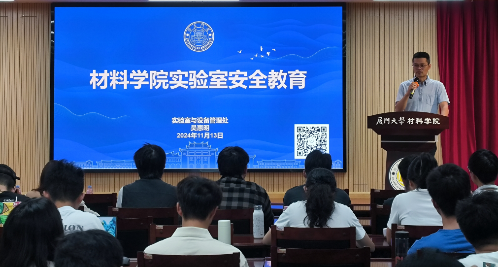 作为555000公海登录2024年新进师生的安全教育培训内容之一, 11月13日厦门大学实验室与设备管理处吴惠明科长为555000公海登录新入学的硕士研究生、博士研究生和新入职教工开展实验室安全教育。吴科长从什么是安全、实验室风险的辨识、如何控制风险、实验室常见的危险因素、实验室曾经发生的危险事件/事故等方面进行介绍,帮助师生了解实验安全、规避实验风险,有助于师生理解并遵守实验室规章制度和仪器设备操作规程的重要性。