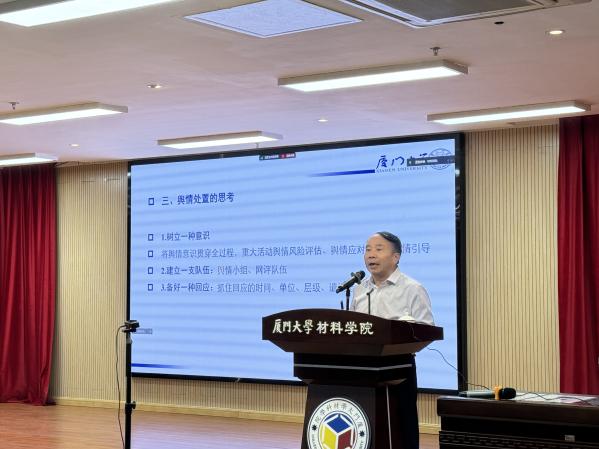 本次培训特别邀请厦门大学党委常委、校党委宣传部兼教师工作部部长高和荣教授作专题报告,主题聚焦全媒体时代下高校意识形态与舆论引导。报告中,高和荣深入探讨了如何应对国际舆论挑战、教育管理中的关键问题,以及智能体数据库运行与舆情应对策略。