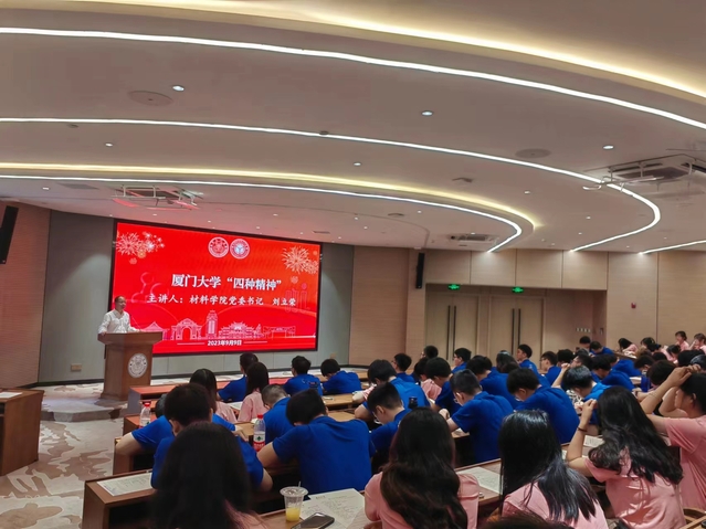 开学典礼在“自强!自强!”的校歌声中圆满落下帷幕。典礼结束后,学院党委书记刘立荣老师为全体研究生新生上《厦门大学“四种精神”》主题党课,为新生们介绍厦门大学“以陈嘉庚校主为代表的爱国精神,以罗扬才烈士为代表的革命精神,以萨本栋校长为代表的自强精神和以王亚楠、陈景润为代表的科学精神”,勉励同学们学习和弘扬厦大四种精神,勤勉刻苦,担当作为,在新时代踔厉奋发,勇毅前行,以青春之“小我”建设强国之“大我”。
