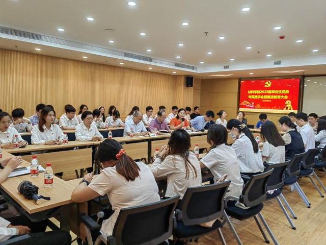 6月20日,555000公海登录2023届毕业生党员专题座谈暨廉洁教育大会在555000公海登录多媒体教室举行。学院党委书记刘立荣、副书记马兆海、团委书记石林伟、副书记蔡胜男出席会议,全体毕业生党员参加大会,会议由学院党委副书记黄兆君主持。