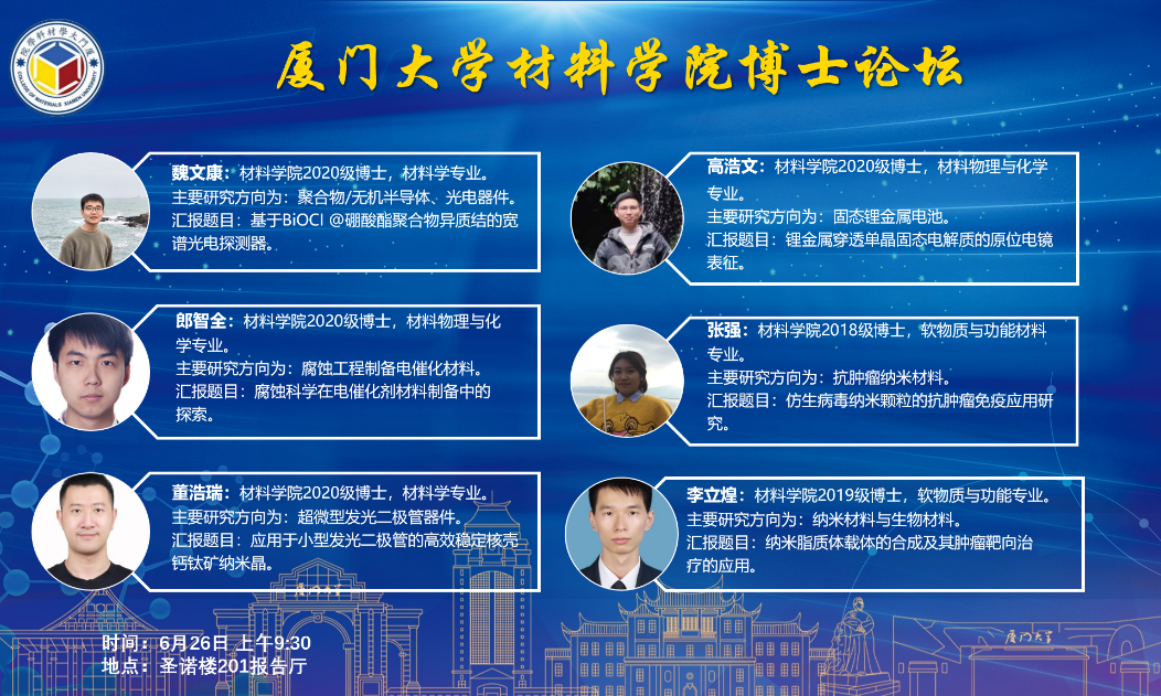 6位报告人分别从发光二极管器件、电催化材料、光电探测器、固态金属电池原位表征、抗肿瘤纳米材料等不用方向为大家介绍了当前技术难题与各自的工作内容。期间,参会同学踊跃提问,对生物材料的稳定性,原位拉曼光谱对发光材料的表征方法等问题展开深入交流。