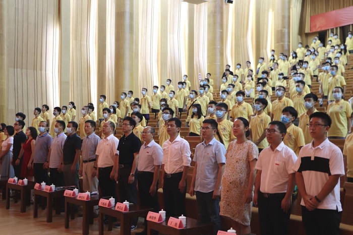 老生代表、2018级博士生范仲雄与新生们分享了他的“厦大感受”——知所从来,思所从往。生逢盛世,定当不负盛世,他希望同学们大力学习和弘扬共产党人在各个历史时期的宝贵精神和财富,以“功成不必在我”的历史境界和“功成必定有我”的历史担当,将自身发展积极融入到民族复兴的科技发展大潮中,为我国经济社会发展奉献厦大力量。2021级本科新生代表周宁隽发言时表示,希望与各位材料学子共勉,做一个心中有梦,眼里有光的青年,在风华正茂的年纪以青春之笔、奋斗之墨书写青春新篇章。