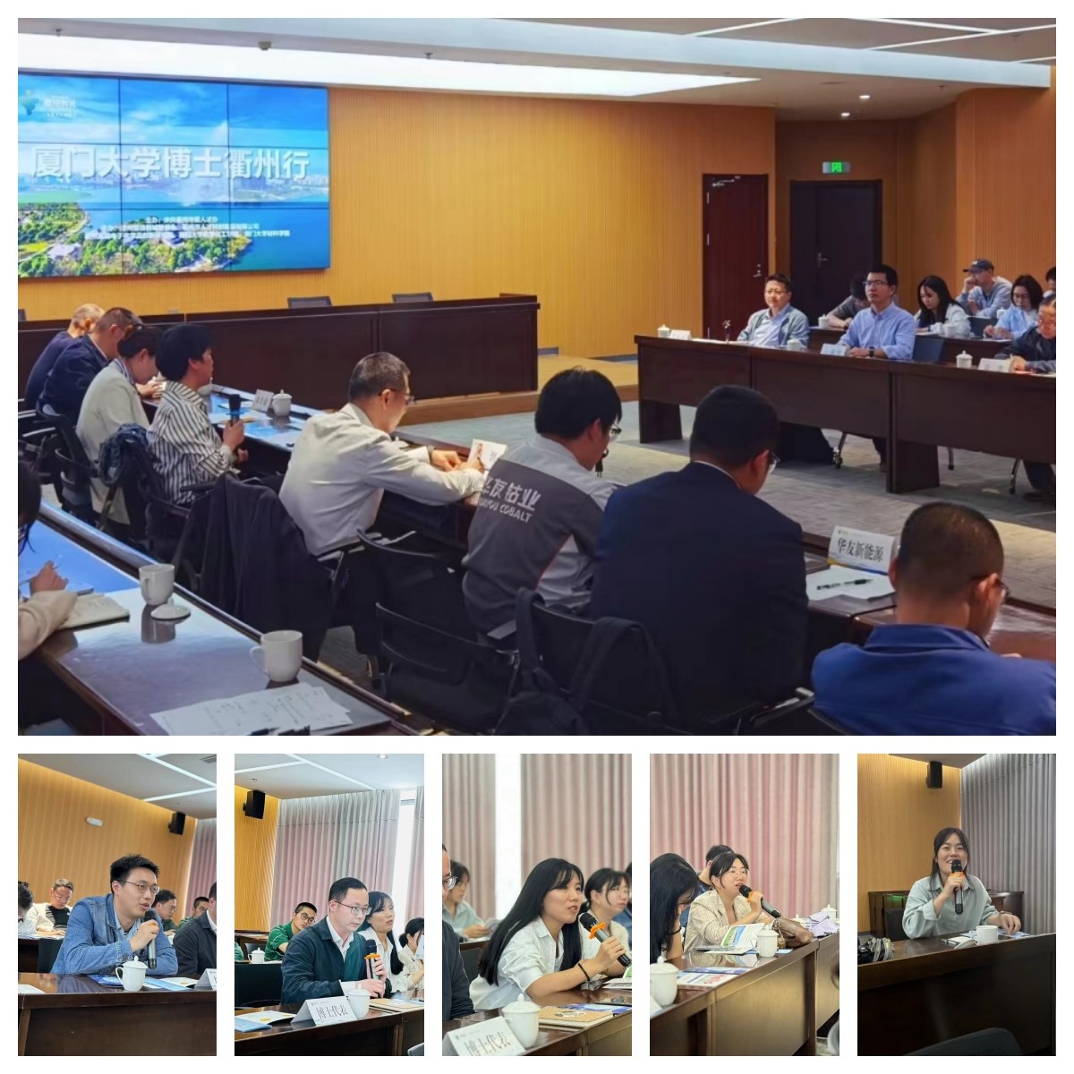 在智造新城高新企业服务社区举办座谈会上,博士团成员结合自身实际,积极发言,就人才政策、营商环境,以及衢州产业发展现状、发展规划等问题与相关企业负责人展开深入交流。座谈会由衢州市人才科创集团董事、副总经理潘涯主持,厦门大学80级校友、衢州智造新城管委会三级调研员周晓红、衢州智造新城管委会人才科技部部长朱玲娟和衢州各企业代表、厦门大学师生参加。
