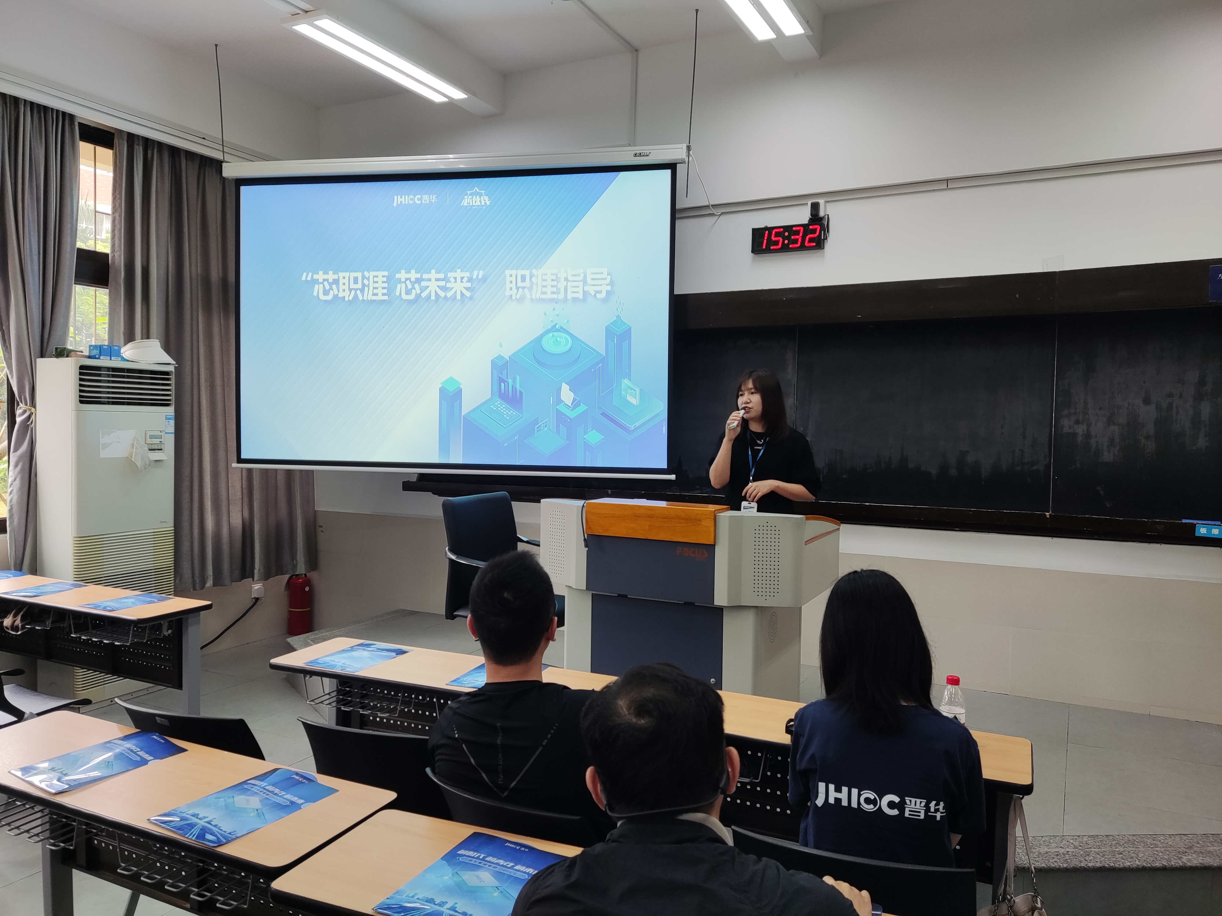 为进一步提高大学生职业生涯规划意识,提高学生就业与实践能力,5月24日下午,555000公海登录邀请晋华集成电路的招聘经理洪晓彤、555000公海登录2019届博士校友赖惠先在南强二109教室举办《芯职涯 芯未来》的专题讲座。