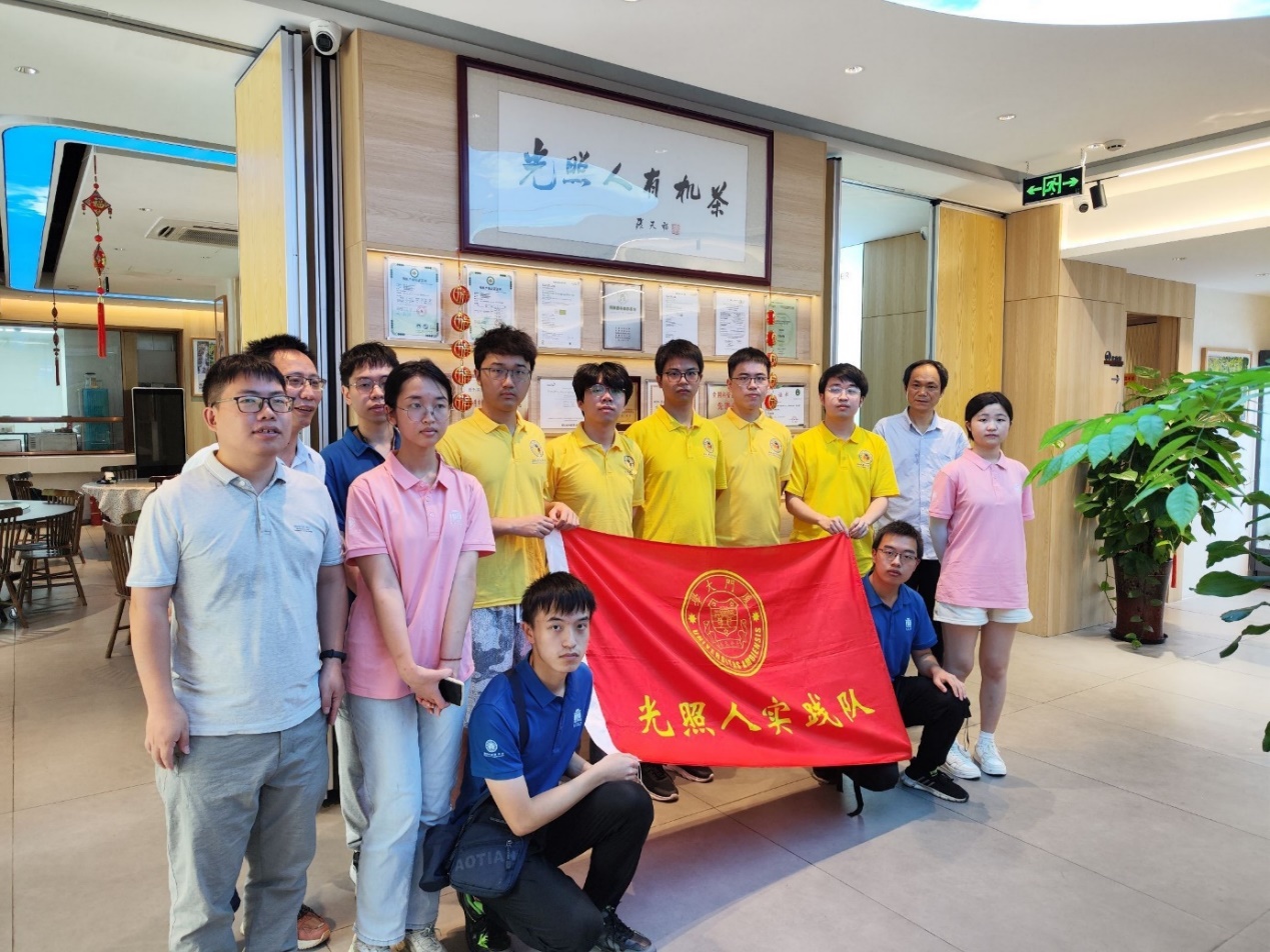 在馆中,实践队认真观看了“光照人”企业宣传片,了解到对“光照人”企业秉持有机理念,致力于生产过程中遵循自然规律,在种茶过程中不适用任何化肥,并采用独特的“种树留草养鸡”生态茶园模式来提高有机茶品质。随后,实践队品鉴了“光照人”有机茶,并和企业创始人之一雷龙开展座谈会。在座谈中,雷龙先生对实践团队成员提出了殷切期望。他鼓励大家以目标为导向,积极参与实践活动,培养“坚韧不拔”的精神,实现团队的共同成长。