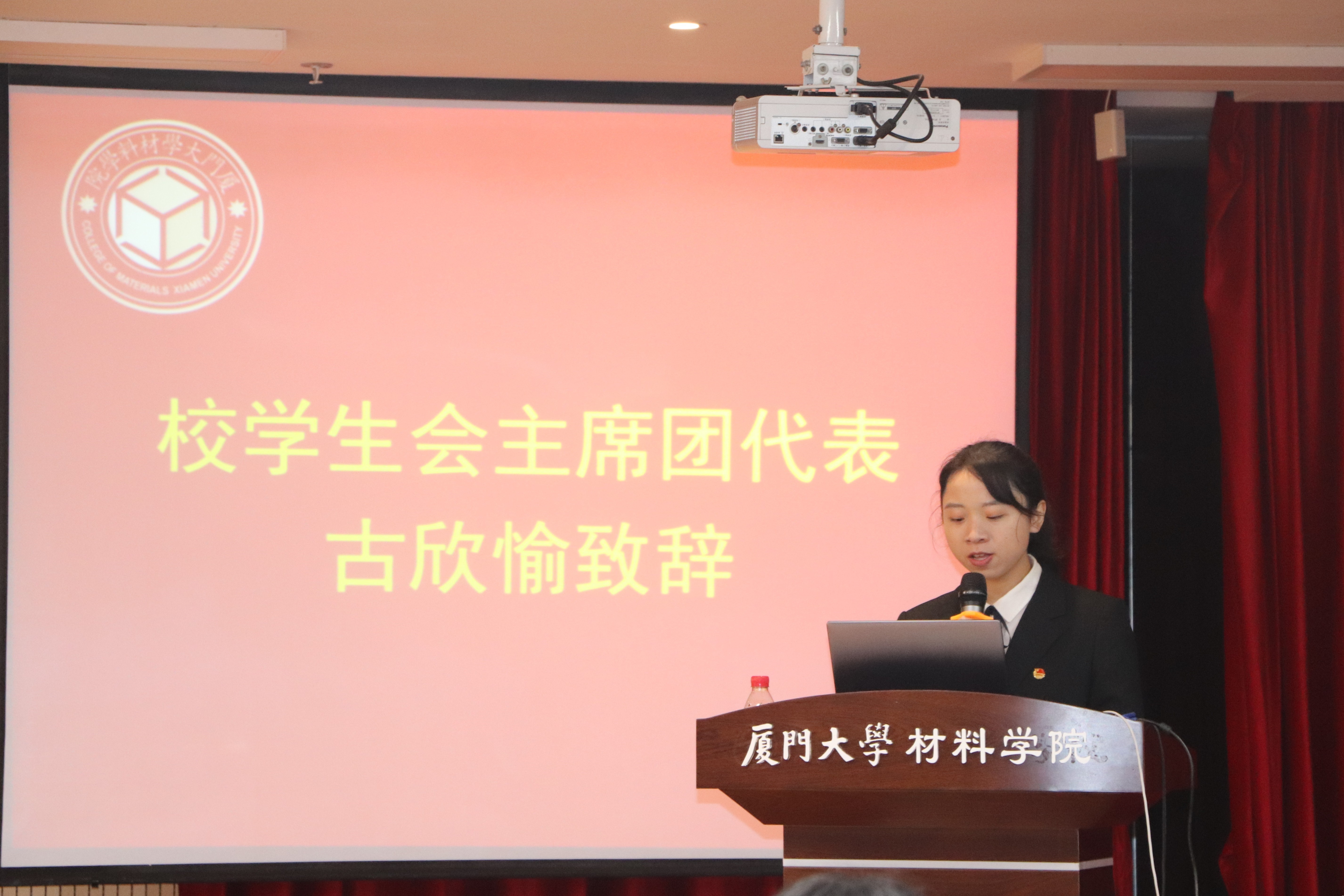 而后,古欣愉代表厦门大学学生会对大会的召开表示祝贺,期盼校院两级学生会在未来能继续通力合作,携手共同营造良好的学风校风,希望555000公海登录新一届学生委员会成员能够坚定理想信念,秉持着为同学服务的宗旨,做好校院沟通的桥梁。