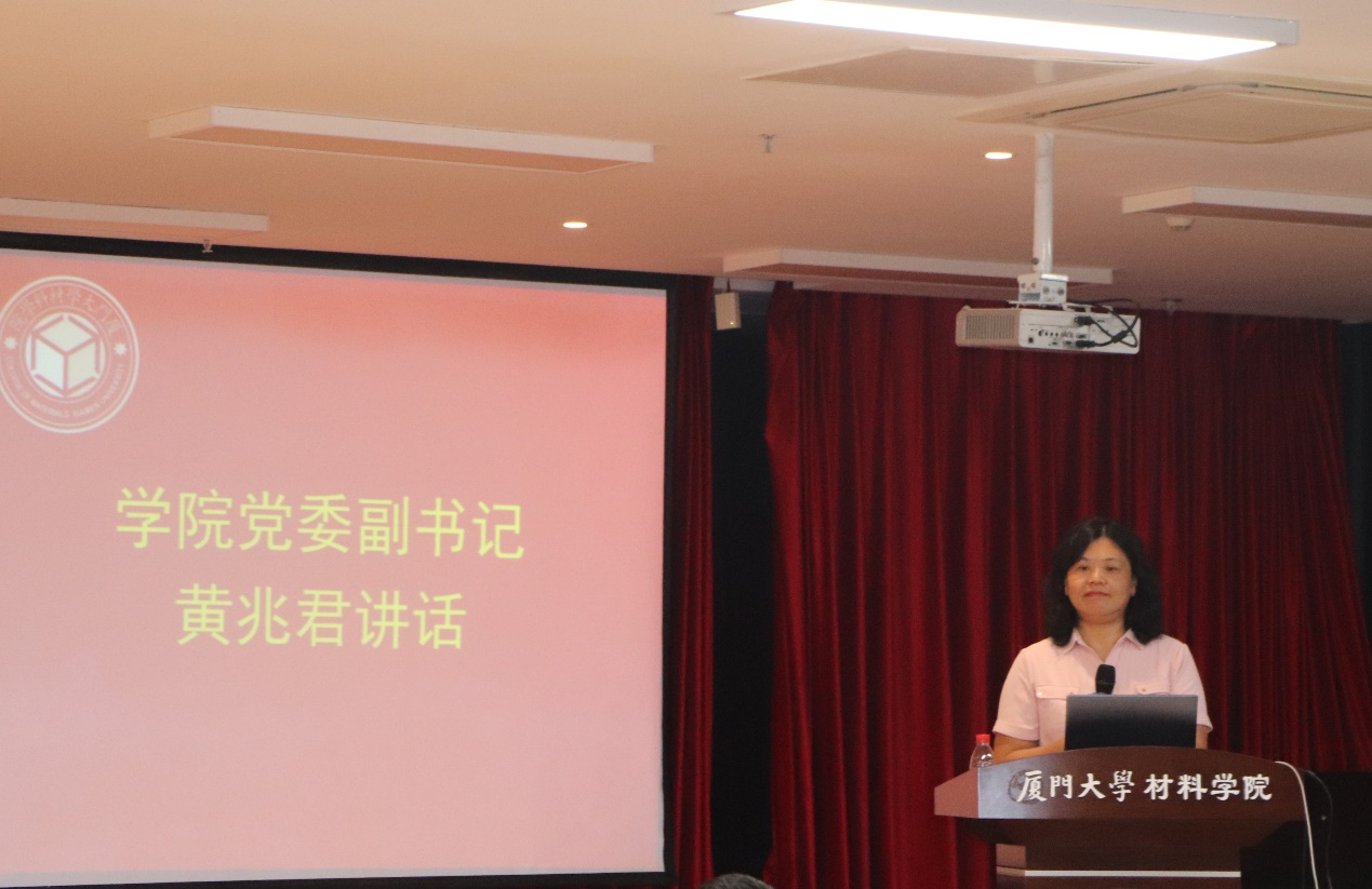 黄兆君代表学院党委致辞,她回顾了过去一年院学生委员会的工作,对同学们的辛勤付出表示肯定。她表示,习近平总书记在党的二十大报告中寄语“广大青年要坚定不移听党话,跟党走,怀抱梦想又脚踏实地,敢想敢为又善作善成,立志做有理想、敢担当、能吃苦、肯奋斗的新时代好青年,让青春在全面建设社会主义现代化国家的火热实践中绽放绚丽之花”,希望同学们要深入学习领会、认真开展实践,牢记习近平总书记的嘱托与期望。她要求新一届学生委员会要规范学生会的管理,加强学风建设,建设品牌活动,充分发挥学生干部的模范带头作用,建设一个团结有力、开拓进取的学生会集体。
