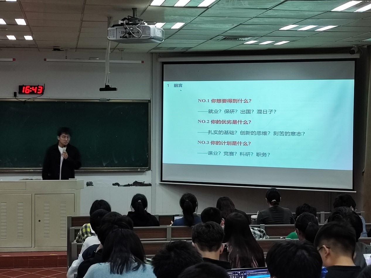 崔宇航同学从学习方法、学科竞赛、科研论文、学生工作四个方面分享了自己保送至清华的心得。大家进入大学后,首先要明确自己的目标,在此基础上,认真完成学业,积极参与活动,做好发展规划,培养各方面的综合能力,方能一步一步朝着既定目标前进。此外,他还鼓励大家要充分利用厦大这一优势资源,多和老师、同学们沟通交流,不断碰撞思维的火花,迸发出新思路新想法。