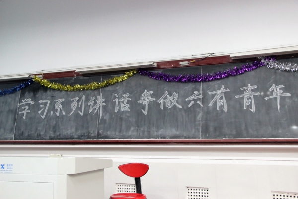 学院团委副书记曹亮老师与2015、2016级的全体同学参与了此次活动。活动以一段短视频开始,详细介绍了习近平总书记对当代大学生说要做新时期的“六有青年”的表述,即做有理想、有追求的大学生,做有担当、有作为的大学生,做有品质、有修养的大学生。习近平总书记曾提出青年是国家的未来和民族的希望,希望同学们肩负时代责任,高扬理想风帆,静下心来刻苦学习,努力练好人生和事业的基本功。接着舞台剧《拒做单身狗》以幽默搞笑的方式展现了“屌丝”青年的蜕变史,不时引爆同学们的笑点,同时也突出了做“六有”青年的重要性。经过了幽默的舞台剧,活动进入到“你划我猜”的游戏环节,电脑随机抽取10人组成5组,每组一类题目,在规定时间内猜对题目多的组获胜。前三组有相应奖品,同时猜对题目最少的两组人员也要接受黑暗饮品的惩罚。紧张刺激的游戏环节后,由16级赵学松、王超两位同学带来的相声《别人家的孩子》用诙谐的语言另类讲述了与别人家的孩子的比较,再次引爆全场。在中国共产党的领导下,中国走上了社会主义的道路,让世界见证了这个东方巨龙的崛起和腾飞。诗朗诵《党团光辉》让我们体会到党团的魅力,为其自豪。