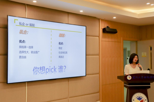 在自由提问环节,现场同学积极踊跃提问,与两位师姐们热烈交流,大家表达了自己的疑问与想法。针对大家的问题,师姐们耐心解答并提出了宝贵意见。同学们表示本次就业分享会受益匪浅,感触良多,非常感谢师姐们的分享!