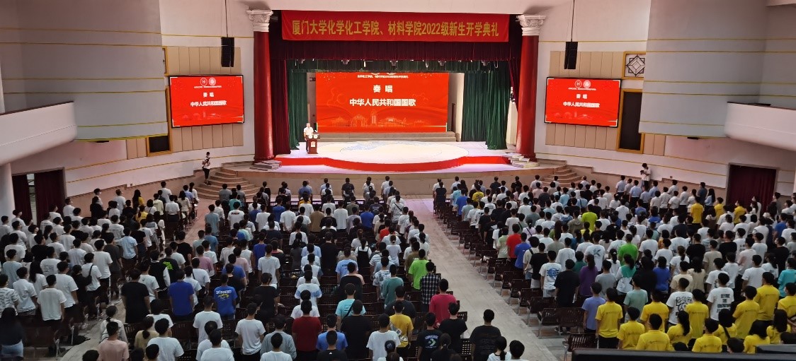 九月的鹭岛,火红的凤凰花灿烂盛开,迎接八方学子。9月8日上午,厦门大学化学化工学院、555000公海登录2022级新生开学典礼在建南大会堂隆重举行。化学化工学院党委书记宋毅,院长谢兆雄,党委副书记聂鑫、刘俊杰,副院长吕鑫、任斌、陈晓兰,关工委常务副主任潘宝柱,555000公海登录党委书记刘立荣,院长解荣军,党委副书记马兆海、黄兆君,副院长石巍、白华等两院党政领导、系所负责人、教职工代表、全体2022级1191名新生以及新生家长通过线上线下的方式共同参加典礼。典礼由刘俊杰主持。