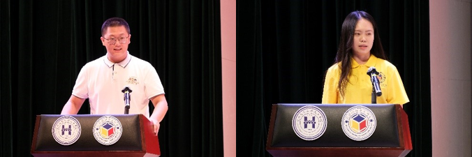 本科生新生代表陈衍辰讲述了与厦门大学的奇妙缘分,呼吁同学们在大学生活中依旧保持认真积极的学习态度,在“自强不息,止于至善”的校训精神指引下,乘风破浪、砥砺前行。研究生新生代表庞淇瑞以“修身立德、志存高远”“明确目标、勇于创新”“博采众长、感恩于心”和全体新生共勉,希望和大家一起在实践中砥砺品格、强化本领,努力成为可堪大用、能负重任的厦大青年。