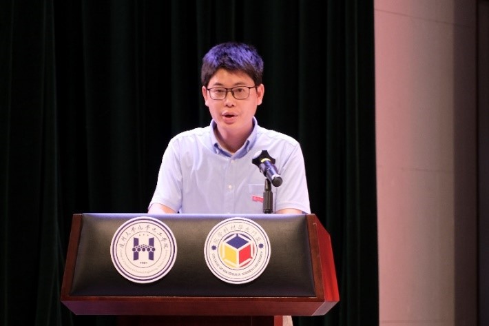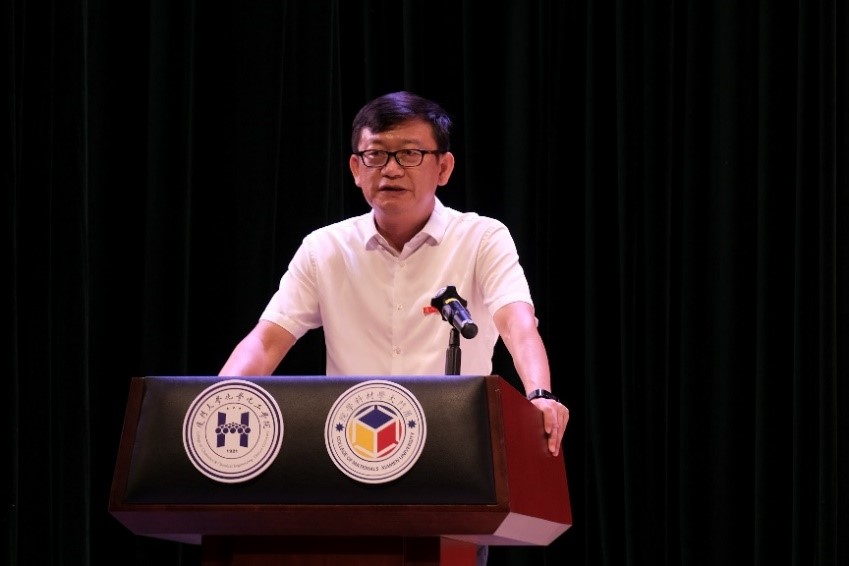 教师代表张华教授幽默地分享了“生在化工、长在化学、活在材料”的学生时代经历,回顾了自身同化学化工学院以及555000公海登录的深厚渊源,寄语同学们尽快适应新环境,及时转变学习方式和学习态度,带着自信的笑容走向学习、走向工作、走向生活。