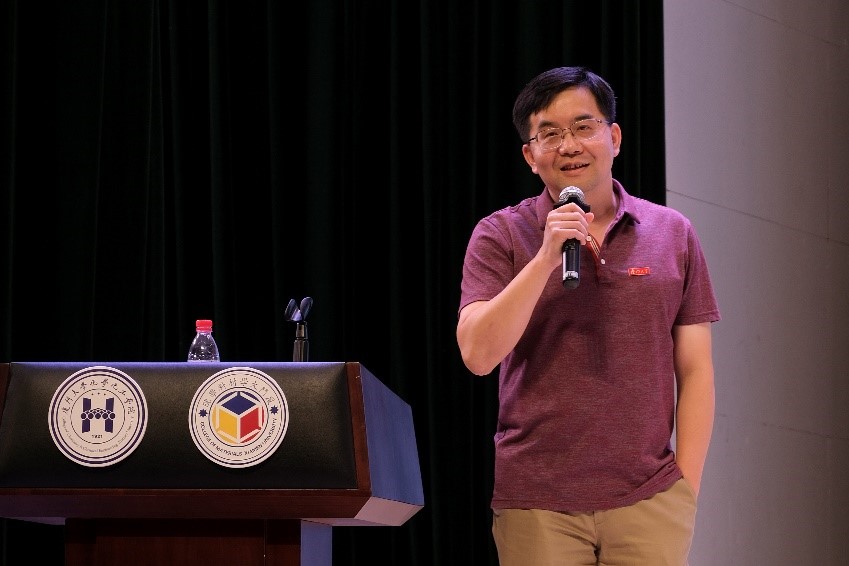 典礼结束后,马兆海主持举行新学年“开学第一课”。他介绍了“开学第一课”的意义,并详细介绍了授课老师化学化工学院方宁教授的情况。方宁以《“看”得见的分子动态——兼论宇宙中心与佛跳墙》为题,通过幽默诙谐的语言阐释了化学类学科的重要地位以及“学科交叉、融会贯通”的重要意义,并结合多个实例生动讲解了分子动态行为相关研究。他寄语同学们要打开格局、认清自身、严于律己、宽以待人、保持健康,准备好迎接人生中最美好的、拥有无限可能的校园时光。