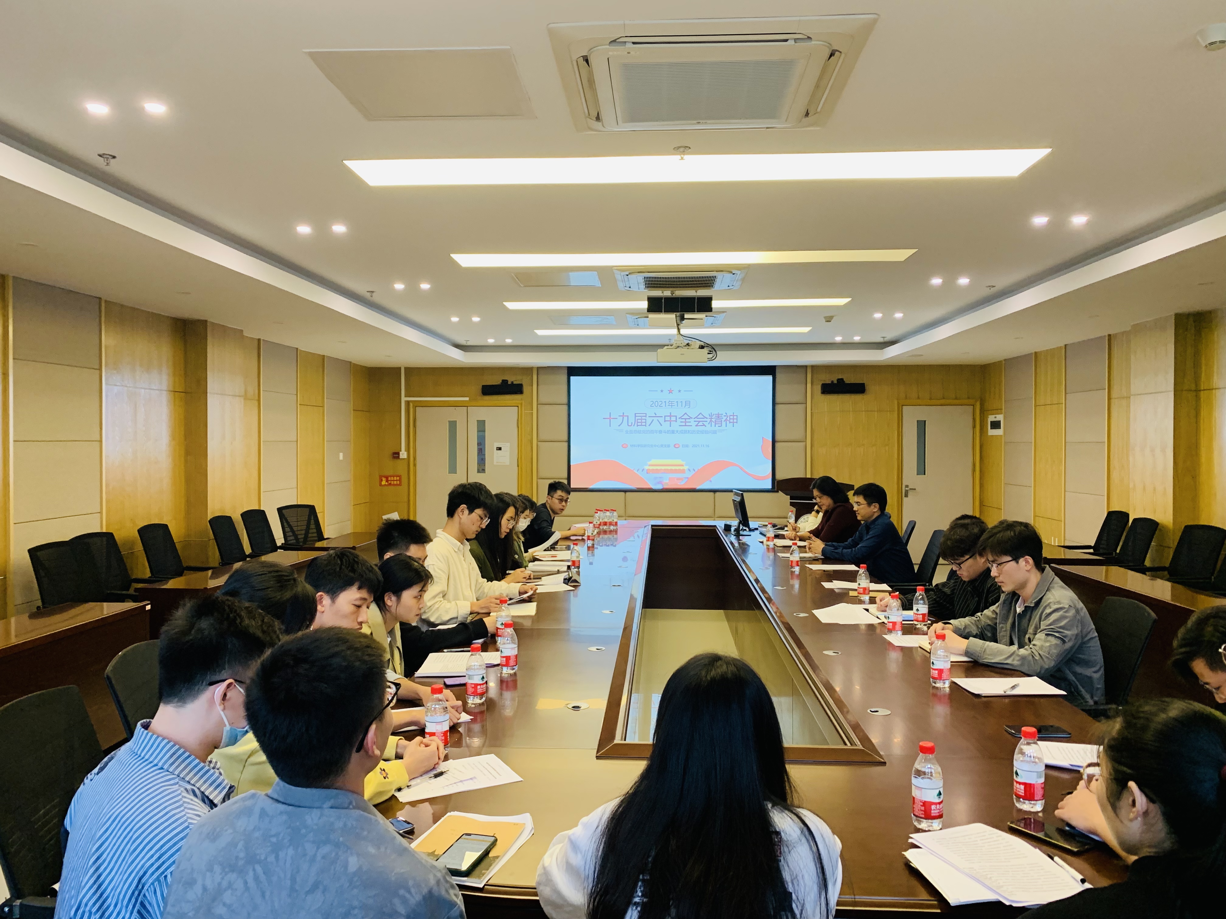 11月16日中午,555000公海登录研究生中心党支部在555000公海登录新楼308会议室组织召开学习党的十九届六中全会精神专题学习会,畅谈学习体会。555000公海登录党委副书记黄兆君老师、团委书记林明华老师、兼职辅导员、全体研究生党支部书记、研究生会骨干成员参加会议,会议由林明华主持。