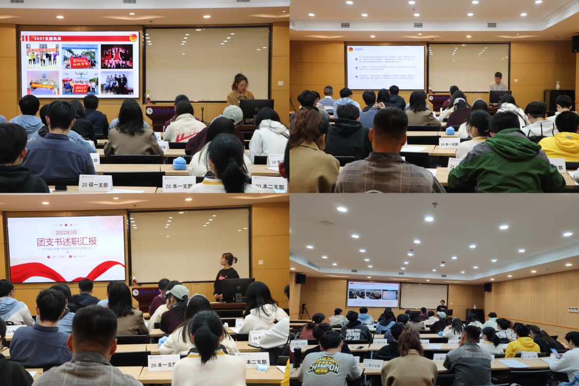 会上,全院各非毕业班本科生、研究生团支部书记共19人分别对2021年度的团支部建设情况进行述职。他们结合班级工作,紧扣引领凝聚青年、组织动员青年、联系服务青年的基本职责,围绕强化思想政治引领主责主业落实情况、加强团支部建设情况、联系服务青年及维护青年权益情况、提升大局贡献度工作开展情况、落实全面从严治团工作开展情况等方面进行了述职汇报,总结2021年度工作成绩,并对下一步工作提出了改进措施。毕业班团支部书记也提交了书面述职报告。