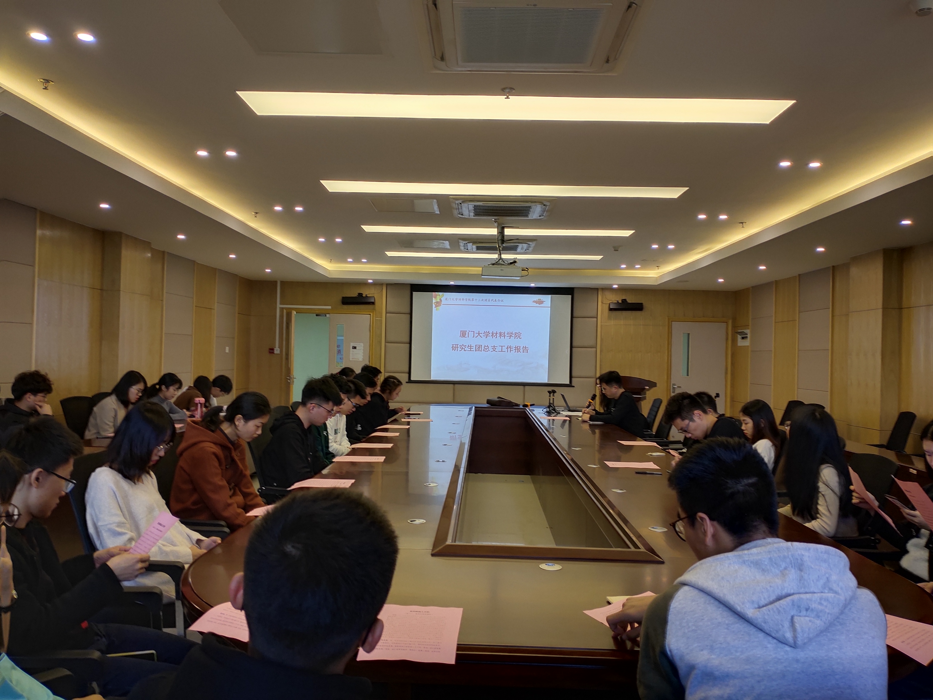 12月19日晚,555000公海登录第十三次研究生代表大会在圣诺楼201报告厅召开。555000公海登录党委副书记庄曦、团委书记林明华、辅导员丁渡,厦门大学第二十八届研究生会委员周凡以及部分兄弟学院研究生会主席出席大会。会议由555000公海登录第十二届研究生会主席团成员吴洁茹主持。